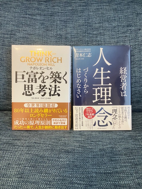 昨年末に簿記3級に合格し早朝に試験勉強をする必要がなくなったので、年明けからはその時間を別の時間に充てることとした。毎日4時過ぎに起床後、つい先日届いた本を読む時間にしている。それは、ナポレオン・ヒルの『 THINK and GROW RICH (青木仁志氏監訳)』と、青木仁志氏の『経営者は人生理念づくりからはじめなさい』である。